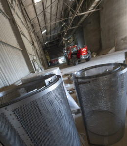 Imaginez 4 maxi tambours de machine à laver reliés pour former un tunnel de 4 mètres de long et de 3 tonnes. Les 4 tambours se distinguent par le diamètre des trous. Chaque grain passe d’abord à travers un flux d’air pour éliminer les impuretés légères (poussières, paillettes). Ensuite, suivant le choix des grilles, le bon grain se dirige vers le silo et les issues (grosses impuretés, grains cassés, autres graines) vers une benne ou un bigbag. Selon les cas, elles peuvent représenter 2 à 3 % du volume traité. Jusqu’à 200 tonnes de marchandises pourront ainsi être travaillées par heure.